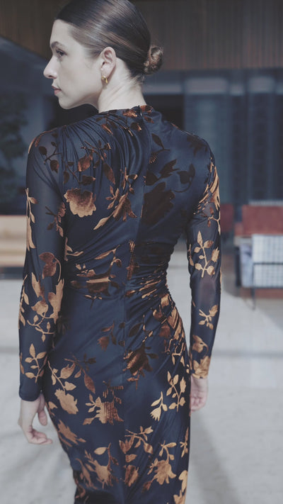 EIFFEL FLOWERS - Vestido negro flocado flores marrones